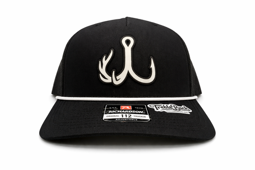 TrebleBuck Richardson 112 Rope Trucker Hat Black w/ White Patch Hunting and Outdoor Cap
